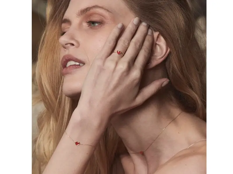 Bracelet with central red enamelled heart made of 18k yellow gold.