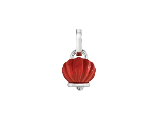 Small Et Voilà Campanella Capriness ring, in silver and hand-engraved red colored coral resin with one brilliant cut diamond.