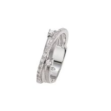 An elegant 18kt white gold ring, it features intertwining flat spiral threads, carefully created with the exclusive coil technique. The iconic design is embellished by two prong-set diamonds and a sophisticated plaque of brilliant-cut diamonds.