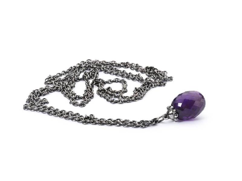 This lockless chain is fitted with a gemstone. Trollbeads may be mounted above the gemstone without the use of tools.
