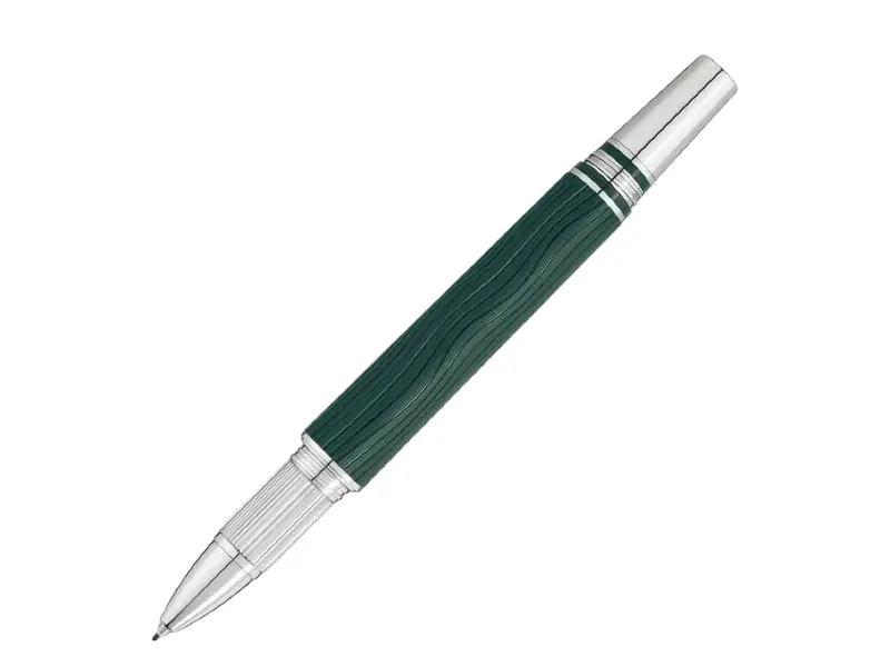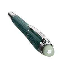 StarWalker PolarGreen brings the beauty of the Northern Lights to life. On Earth, humans can gaze skyward and be transported to realms of wonder as they witness their grand spectacle. The dome on the cap top is made of transparent resin and glows in low light, recalling the enchanting dancing auroras of the night sky. The wave pattern on the dark green precious resin of the cap and barrel admirably captures the spectral sheen of the lights, and the matte finish accentuates the seemly reflections. For a finishing touch, the fineliner is complemented by its platinum fittings.