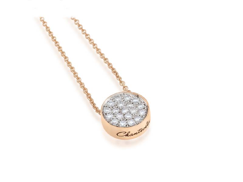 18 KT ROSE GOLD NECKLACE WITH WHITE DIAMONDS PAVE’ AND WHITE ENAMEL PAILLETTES CHANTECLER 41409