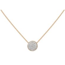 18Kt rose gold necklace 40/42 cm long with Paillettes pendant in diamonds pavé and white enamel.