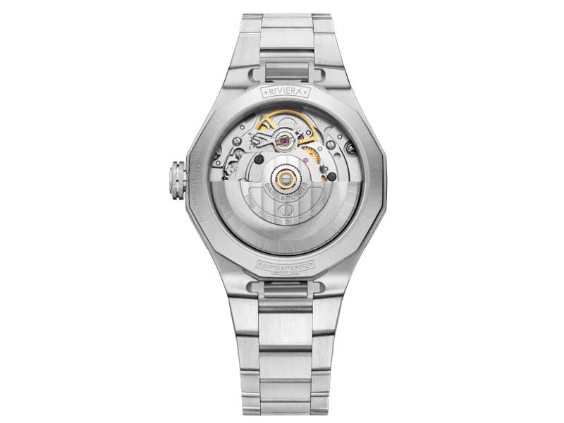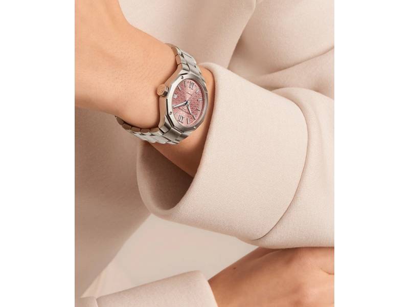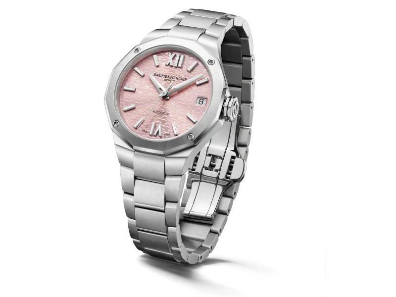 In 2022, Baume & Mercier presents two new, ultra-feminine versions of the Riviera, each in an elegant 33 mm diameter, with a “Swiss-made” self-winding movement and an interchangeable integrated steel bracelet. The first is adorned with a pink “sun satin” dial, while the second asserts a white mother-of-pearl dial. The new palette of 33 mm ladies’ Riviera watches keeps it pared down to the essential: assertive femininity, supreme style and natural flair. The polished / satin-finished strap – featuring a reliable, robust interchangeability system for use without tools – makes it possible to change looks on a whim. Each one is trustworthy, athletic, elegant and authentic. Each is distinctive of the Riviera style. For today’s woman.