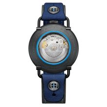 The BAUME OCEAN II is a 42mm blue automatic watch crafted in upcycled plastic from marine pollution gathered by the NGO Waste Free Oceans. Its interchangeable strap is made of woven RPET and lined with natural black cork.