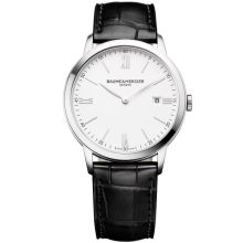 This 40 mm round watch with a polished steel bezel and rich black leather strap is a sleek Swiss watch for men who understand the minimalist sentiment. Roman numerals, a crisp white dial and rhodium-plated hour and minute hands give this timepiece an unquestionable quality. Taste, style, and comfort, the Classima 10323, driven by quartz movement, offers it all while saying less.