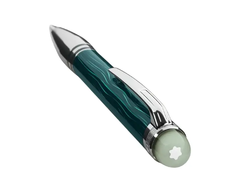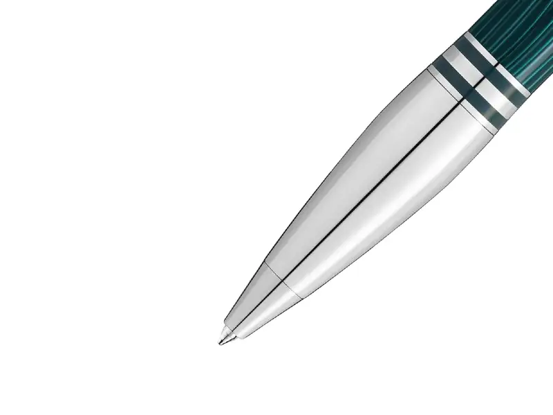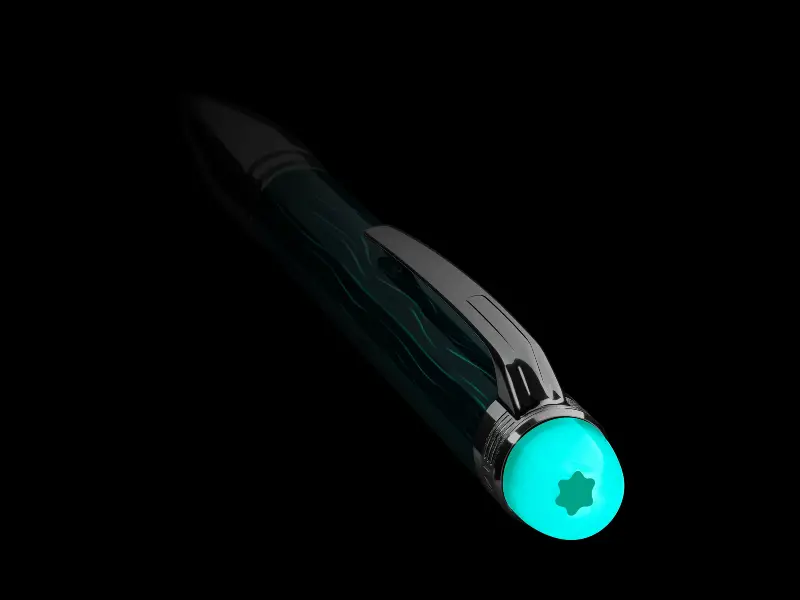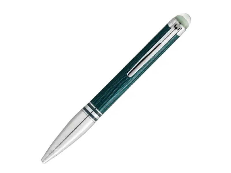 StarWalker PolarGreen brings the beauty of the Northern Lights to life. On Earth, humans can gaze skyward and be transported to realms of wonder as they witness their grand spectacle. The dome on the cap top is made of transparent resin and glows in low light, recalling the enchanting dancing auroras of the night sky. The guilloche pattern on the barrel admirably captures the spectral sheen of the lights, and the dark green lacquer finish accentuates the seemly reflections. The dark green resin rings of the forepart enhance the platinum-coated fittings of the ballpoint.