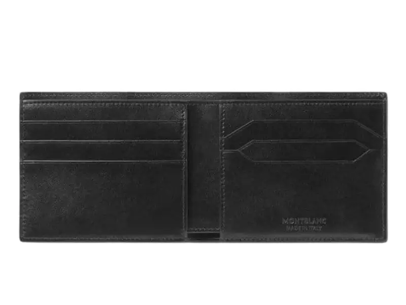 Slim and stylish, our classic Meisterstück 6cc bi-fold wallet makes for an elegant everyday companion. Designed to hold all your essentials, the wallet features six credit card slots, two compartments for banknotes, plus two additional pockets for receipts. Crafted from sleek black leather and lined with black fabric, it’s finished with the Montblanc emblem.
