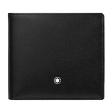 Wallet 8cc, made of black full-grain cowhide with Montblanc deep shine, jacquard lining with Montblanc brand name, Montblanc emblem with palladium finish ring, with 8 pockets for credit cards, 2 compartments for banknotes, 2 additional pockets