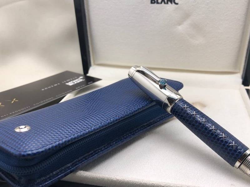 Mont Blanc Bohème Jewels roller in metal and blue skin. Clip embellished with a topaz
