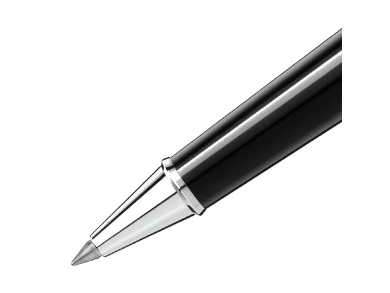 This rollerball features a platinum-plated clip and a black precious resin barrel and cap.
