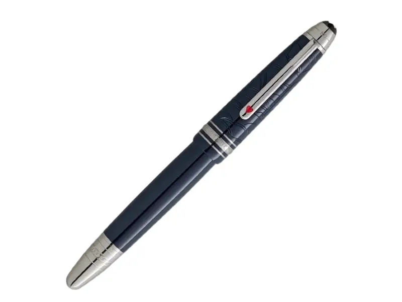 The Meisterstück Around the World in 80 Days collection draws its inspiration from Jules Verne’s renowned adventure novel. The LeGrand Rollerball, adorned in dark blue precious resin, recounts the epic journey of Mr. Fogg and Passepartout. Embarking on the final leg from Yokohama back to London via the United States, the duo traverses the vast American continent by train. Delve into the intricate details – a train elegantly lasered on the cap, a safety chain pattern on the cone, mirroring a pivotal moment when Passepartout detaches the train from the locomotive to save the crew who was attacked by Sioux. The cap’s design captures pressure valves and the billowing smoke of the locomotive, while the clip boasts a red lacquered heart card suit, symbolizing the union between Phileas Fogg and Princess Aouda. Additionally, card suits represent Fogg’s daring wager to complete the journey in a mere 80 days. The cap top bears the embossed timeline of the journey – 36 days from Yokohama to London, culminating in the grand total of 80 days around the world.