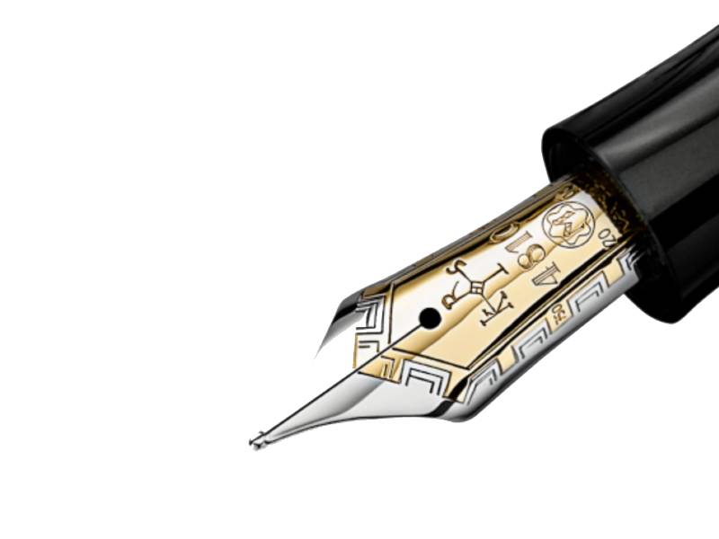 Nib: The nib is 18K gold with a rhodium finish and special engraving, M.