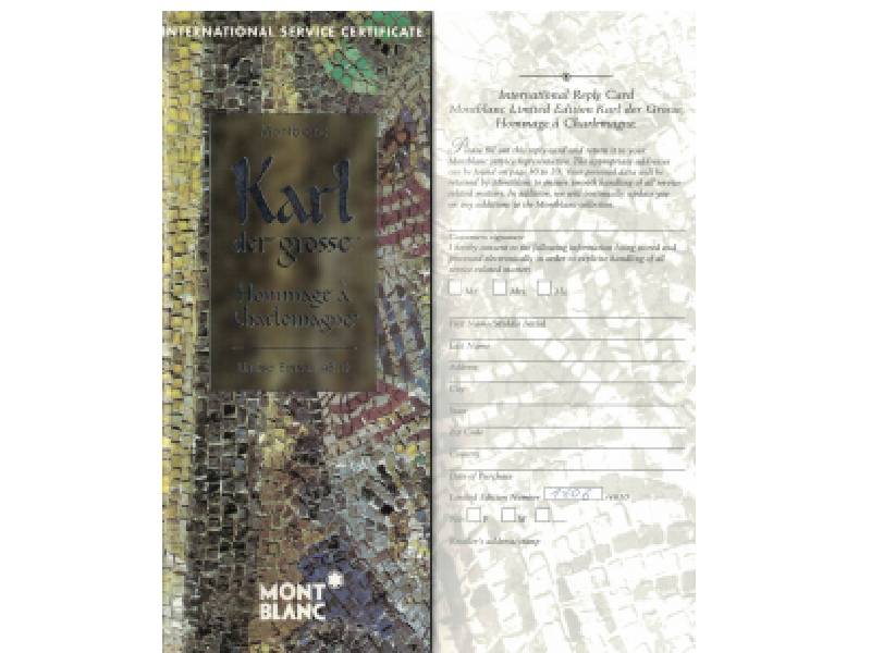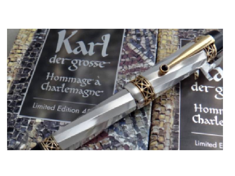 The Patron of Art Edition Karl der Grosse, Hommage à Charlemagne pays tribute to this great cultural visionary of the first millennium with an equally great writing instrument. The barrel and cap of Edition 4810 are made of delicately wound 925 sterling silver. The detailed gold-plated mountings are reminiscent of Carolingian features in the decoration of Aachen Cathedral, where Charlemagne was crowned.