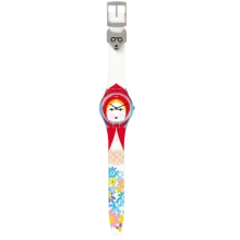 Little Red Riding Hood needs all the help she can get from the wolf who ate Grandma. CAPPUCCETTO (GS150) tells the famous tale, with Little Red Riding Hood herself printed prettily on the dial, case, and silicone strap. She’s followed by flowers one side and the wolf wearing Grandma’s glasses on the other. Oh no!