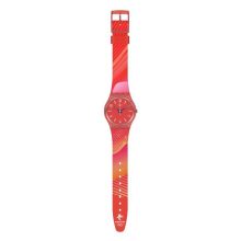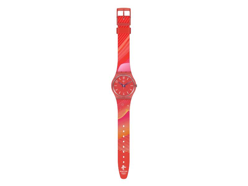 From the Olympic collection, this Beijing 2022 watch exudes the beauty of China with its multicolored silicone strap, red dial with printed indexes, and bio-sourced case.
