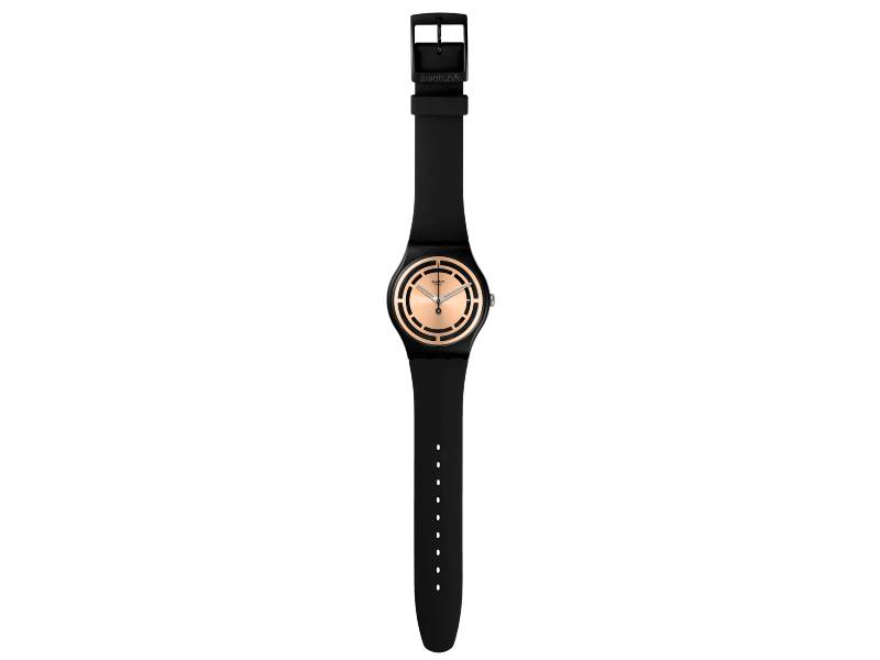 This matte black NEW GENT BIOCERAMIC features a sun-brushed beige dial with an intriguing pattern of perforations. The beige backing on the strap completes the classy look of this watch.