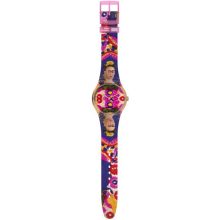 This Swatch art collaboration New Gent watch celebrates the iconic Frida Kahlo painting, ‘The Frame’, as part of the Swatch X Centre Pompidou Collection. The semi-transparent matte pink silicone strap with multi-colored allover print that extends to the dial reflects traditional Mexican folk art and colors. A semi-transparent matte pink plastic buckle and silicone loop continue this fiesta of vibrant color.