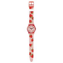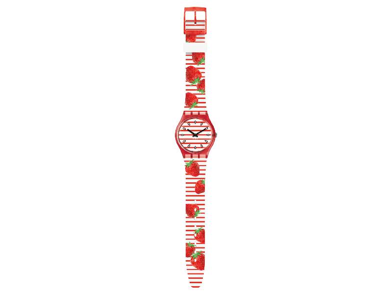 With TOILE FRAISEE (GR177) on your wrist, beautiful days never end. Juicy strawberries adorn the striped strap like summer fabrics. The transparent red case frames the coordinated striped dial enhancing the whole design.