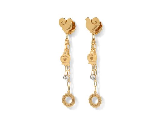 Anello in oro giallo e diamanti con campanella in oro giallo e corallo salmone.