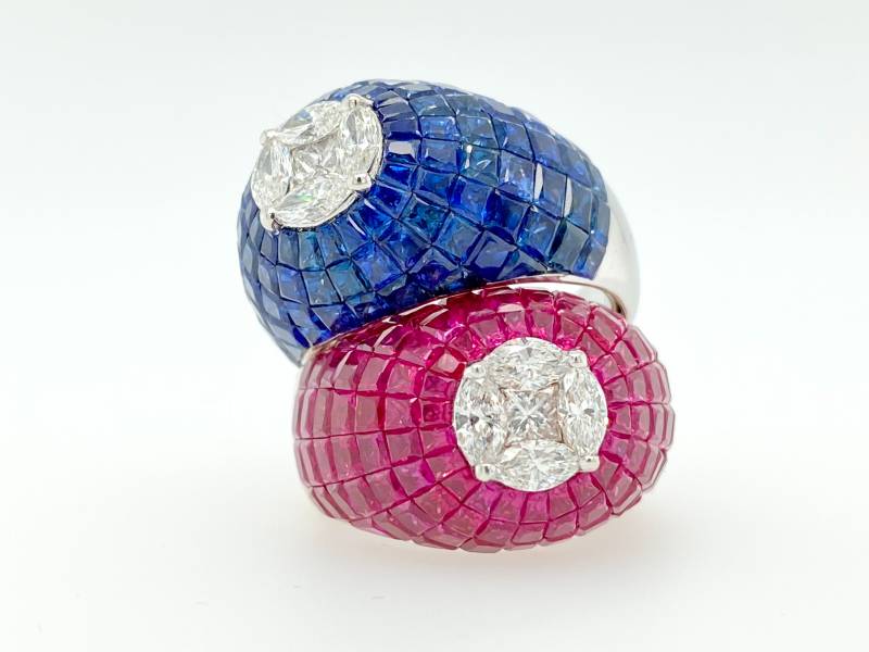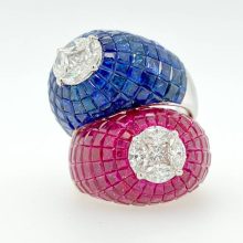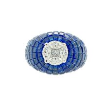Anello in oro bianco 18 Kt, zaffiri e diamanti