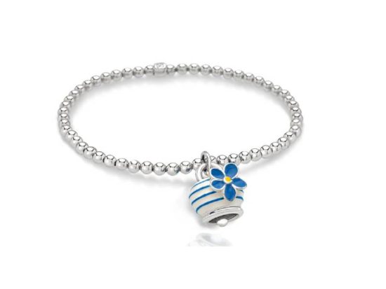 BRACCIALE ELASTICO IN ARGENTO CON CAMPANELLA MEDIA IN RESINA SFACCETTATA COLOR TOPAZIO AZZURRO ET VOILA’ CHANTECLER 44332