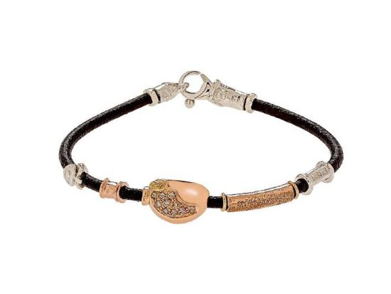 BRACCIALE IN CUOIO CON ELEMENTI IN ORO E PIETRE SEMI PREZIOSE ACCENTI MISANI B2182