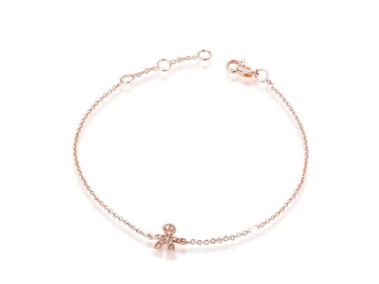 Bracciale sagoma bimba in oro bianco 18kt con catena.