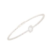 Bracciale rigido in oro bianco 18 kt con diamanti bianchi e diamanti centrale taglio navette. Chiusura con scatto calamitato.