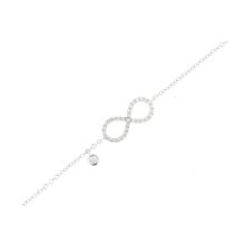 Bracciale in oro bianco 18Kt con elemento centrale a forma di infinito e un diamante pendente.