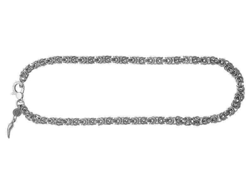 Una catena classica, un evergreen senza tempo che diviene gioiello pieno di luce. Nella collana Mini Bizantina l’argento viene declinato nelle forme più eleganti della nostra tradizione contemporanea. Legami infiniti di bellezza.