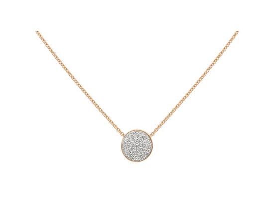 Collana di lunghezza 40/42 cm con pendente Paillettes diametro 12 mm in oro giallo 18Kt con zaffiri blu incastonati a pavè e smalto blu.