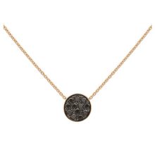 Collana di lunghezza 40/42 cm con pendente Paillettes diametro 12 mm in oro rosa 18Kt con 12 diamanti champagne incastonati a pavè e smalto nero.