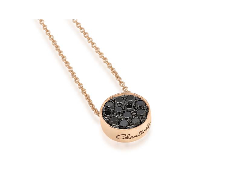 GIROCOLLO CON PENDENTE PAILETTES ORO ROSA, PAVE’ DIAMANTI NERI E SMALTO NERO PAILLETTES CHANTECLER 41410