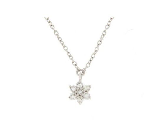 Girocollo, punto luce, in oro bianco 18 kt e diamante centrale 0.05 ct G VS. Polello. Made in Italy.