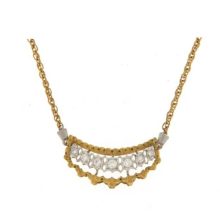 Girocollo in oro giallo 18Kt con una sagoma smerlata a scalare con bordi in oro giallo 18Kt e parte interna sforata incassata in oro bianco 18Kt