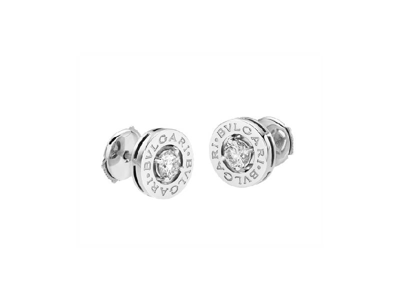 Orecchini BVLGARI BVLGARI in oro rosa o oro bianco 18 kt con diamante al centro.