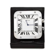 OROLOGIO SVEGLIA DA VIAGGIO ACCIAIO/PELLE NERA SANTOS CARTIER W0100042
