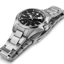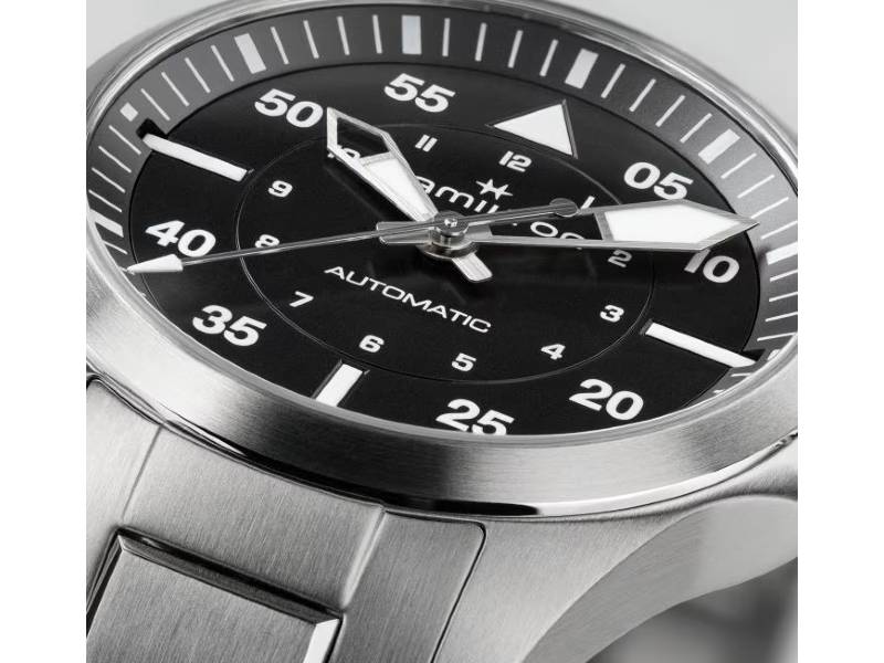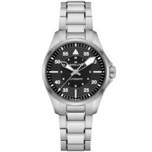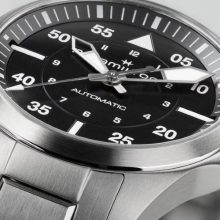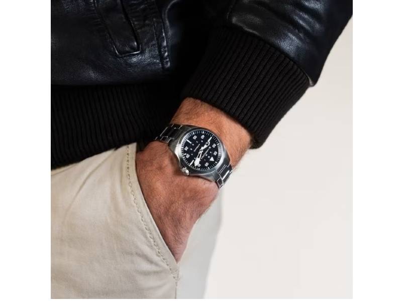 Realizzato pensando agli appassionati di aviazione, il Khaki Pilot Auto richiama immediatamente lo spirito di esplorazione e di avventura del Khaki. Alimentate dal movimento automatico H-10 con riserva di carica di 80 ore e spirale in Nivachron™, le versioni da 36 mm rispettano il trend di orologi più piccoli. Sebbene sempre rispettosi degli standard di precisione per la cabina di pilotaggio, questi design più compatti si prestano alla vita nei cieli ma anche sulla terraferma. Il Khaki Pilot Auto abbina un intramontabile bracciale in acciaio inossidabile e un quadrante di un nero affascinante, con rivestimento Super-LumiNova per una maggiore leggibilità.
