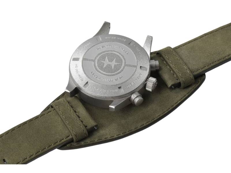 Robusto, resistente e preciso, il Khaki Field Automatic Chronograph è il segnatempo perfetto per gli esploratori più impavidi. Questo orologio militare da 44 mm in acciaio con finitura sabbiata reca sul fondello una speciale incisione, in omaggio alla tradizione di Hamilton; i numeri in rilievo rivestiti di SuperLuminova conferiscono leggibilità e profondità al quadrante. Abbinato a un comodo cinturino in pelle, questo accessorio ad elevate prestazioni è pensato per le avventure all’aperto.