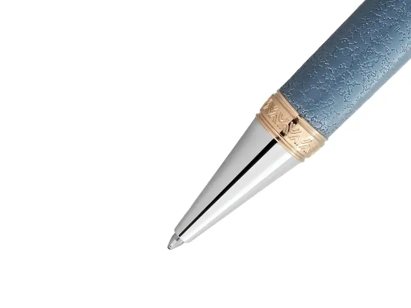 Cappuccio: il cappuccio in pregiata lacca riprende la forma di un globo, coronato dall’emblema Montblanc.