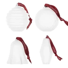 Iconic Whishes, un moderno e raffinato set di palline natalizie in vetro soffiato, è animato da pattern geometrici che giocano con le iconiche e distintive forme di Venini.