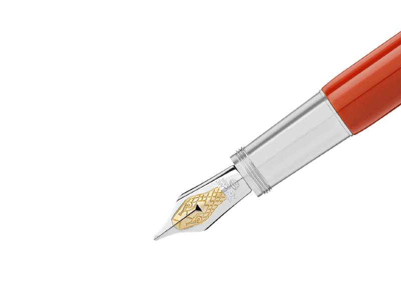 Quando fu creata, nel 1906, la stilografica “Rouge et Noir” era considerata una straordinaria prodezza tecnica, che garantiva un utilizzo semplice, senza dover continuamente intingere il pennino nel calamaio. La Heritage Collection Rouge et Noir celebra il 110° anniversario dello spirito pionieristico di Montblanc. Rielaborazione del leggendario strumento da scrittura, è caratterizzata da una silhouette più lunga e sottile e una maestria artigiana affinata di generazione in generazione. Clip a serpente in stile vintage con dettagli coordinati. La clip è realizzata con un procedimento di stampaggio e avvolgimento in una speciale lega metallica e viene anticata attraverso un’esclusiva tecnica di galvanizzazione e decapaggio.