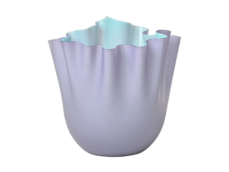 Questo modello è nato dalla collaborazione tra Fulvio Bianconi e Paolo Venini nel 1948, dalla forma morbida con orlo ondulato e mosso, sempre unico, ottenuto con la tecnica della mano volante. Di ogni Fazzoletto Opalini non ne esiste uno identico in tutto il mondo.